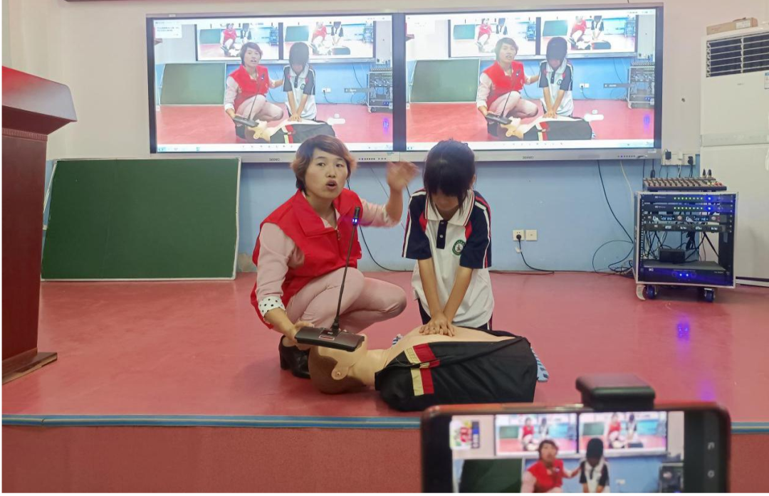 活动现场,充满趣味的开场游戏如磁石般吸引着孩子们,在欢声笑语中拉开了活动序幕。随后,巾帼志愿者结合暑假安全隐患,深入浅出地讲解防溺水知识,通过视频播放、情境演练、急救实操等,融合防溺水安全知识,课题生动有趣。在实践操作环节,孩子们积极参与心肺复苏、异物梗阻的模拟演练,在亲身体验中熟练掌握自救和他救的自护技能。