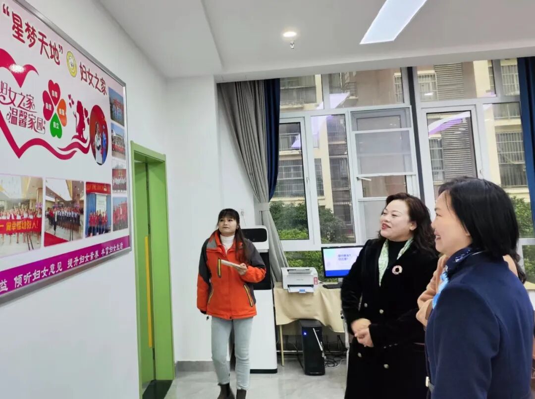 金丽娟一行认真听取了湖北省第十三次妇女代表大会代表、湖北省三八红旗手、星月幼教集团负责人胡月霞对三八红旗手工作室运行、特色妇女之家创建的汇报,并实地察看了胡月霞三八红旗手工作室团队建设和“星梦天地”妇女之家开展巾帼宣讲、培训赋能、心理关爱、家庭教育等活动情况。