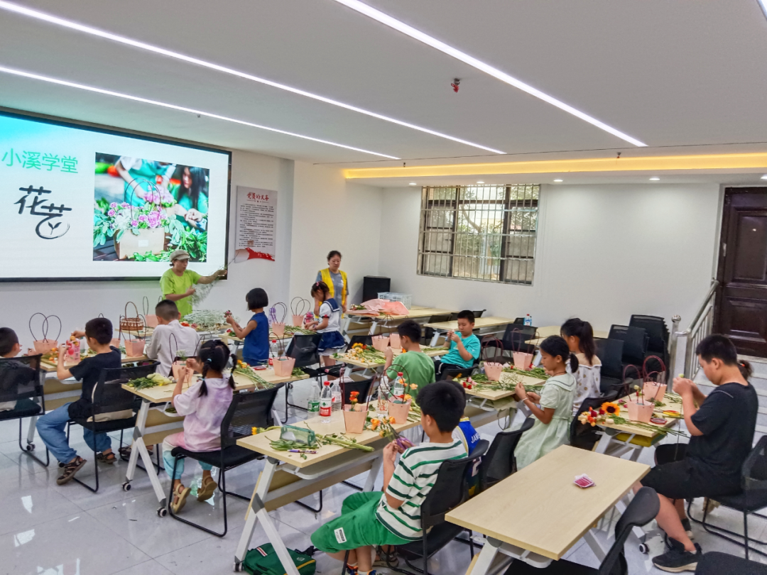 7月8日-17日,小溪志愿服务队走进黄石港区沈家营街道市建村社区开展关爱服务活动。志愿者们针对儿童的身心需求精心设计了每天的活动、课程,确保孩子们劳逸结合。活动期间,志愿者们还带领孩子们开展了亲子心理团辅、花艺制作、财商游戏、中药文化学习、合唱练习等特色活动,让孩子们在学习与实践中品味多彩文化,让梦想与希望的种子在每一个孩子心中生根发芽。