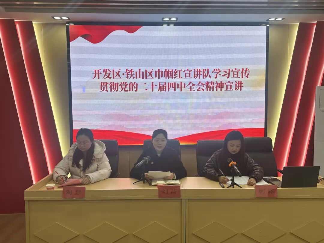 开发区・铁山区巾帼红宣讲队走进上林社区百花园小区党群服务站,区妇联主席刘萏与镇街、社区妇联执委、“最美家庭”代表及优秀女性代表齐聚一堂,以“深学笃行党的二十届四中全会精神 凝聚巾帼力量助力高质量发展”为题,围绕全会重大意义、妇女儿童工作重点部署及落实全会精神举措开展宣讲,激励广大妇女以实际行动贯彻落实全会精神。