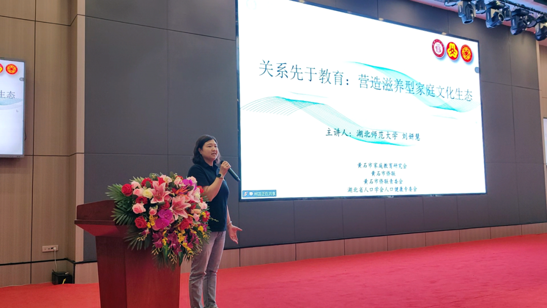 湖北省人大代表、黄石市家庭教育研究会会长、湖北师范大学教育科学学院副教授、黄石市“好家风宣讲团”成员刘妍慧以《关系先于教育:营造滋养型家庭文化生态》为题分享了自己的家庭教育理论研究成果和实践经验。
