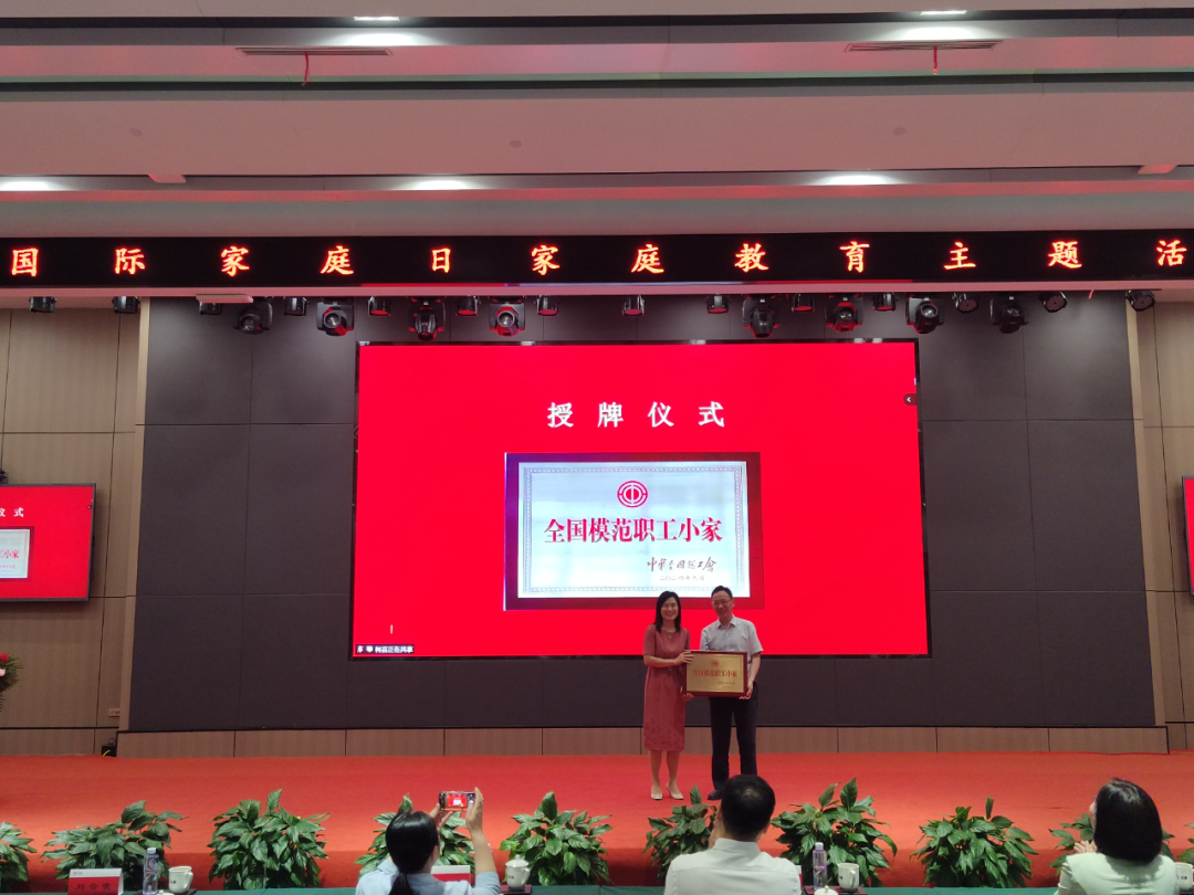 华新水泥股份有限公司高级顾问、市女企联会长、中国妇女十三大代表、湖北省三八红旗手刘云霞为荣获中华全国总工会“全国模范职工小家”称号的华新水泥股份有限公司包装分公司授牌。